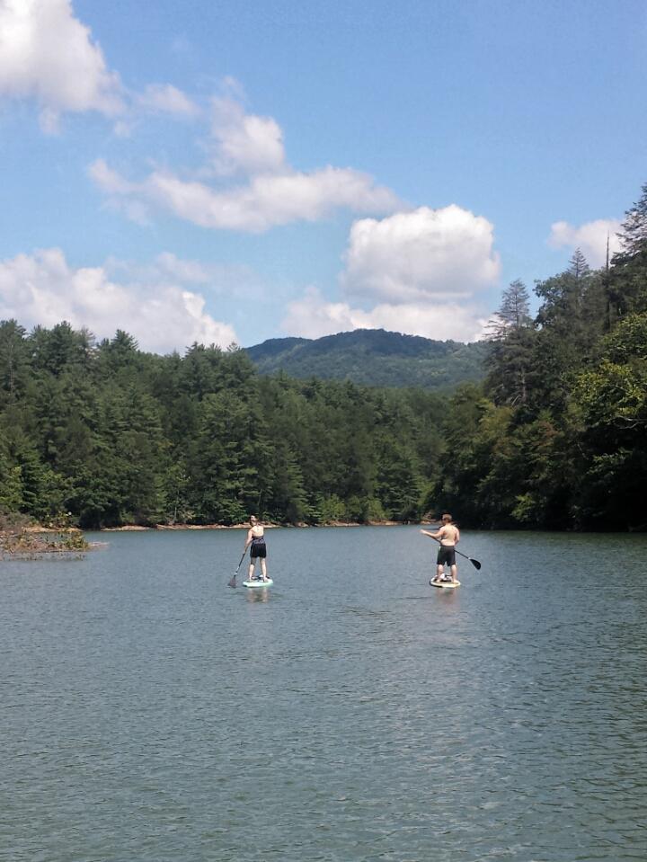 We planned on going paddleboarding our first day in Blue Ridge. Neither of us had gone before, but found a great guy who gave us a lesson and a trip on Blue Ridge Lake. He and his wife (and two dogs!) taught us the basics and we spent the rest of the afternoon traveling the lake and taking in the views. All in all we were on the water over 4 hours (note to self: more sunscreen next time), saw some beautiful scenery and totally fell in love. Seriously, we’re already plotting how we can work a paddle board into our wedding registry.