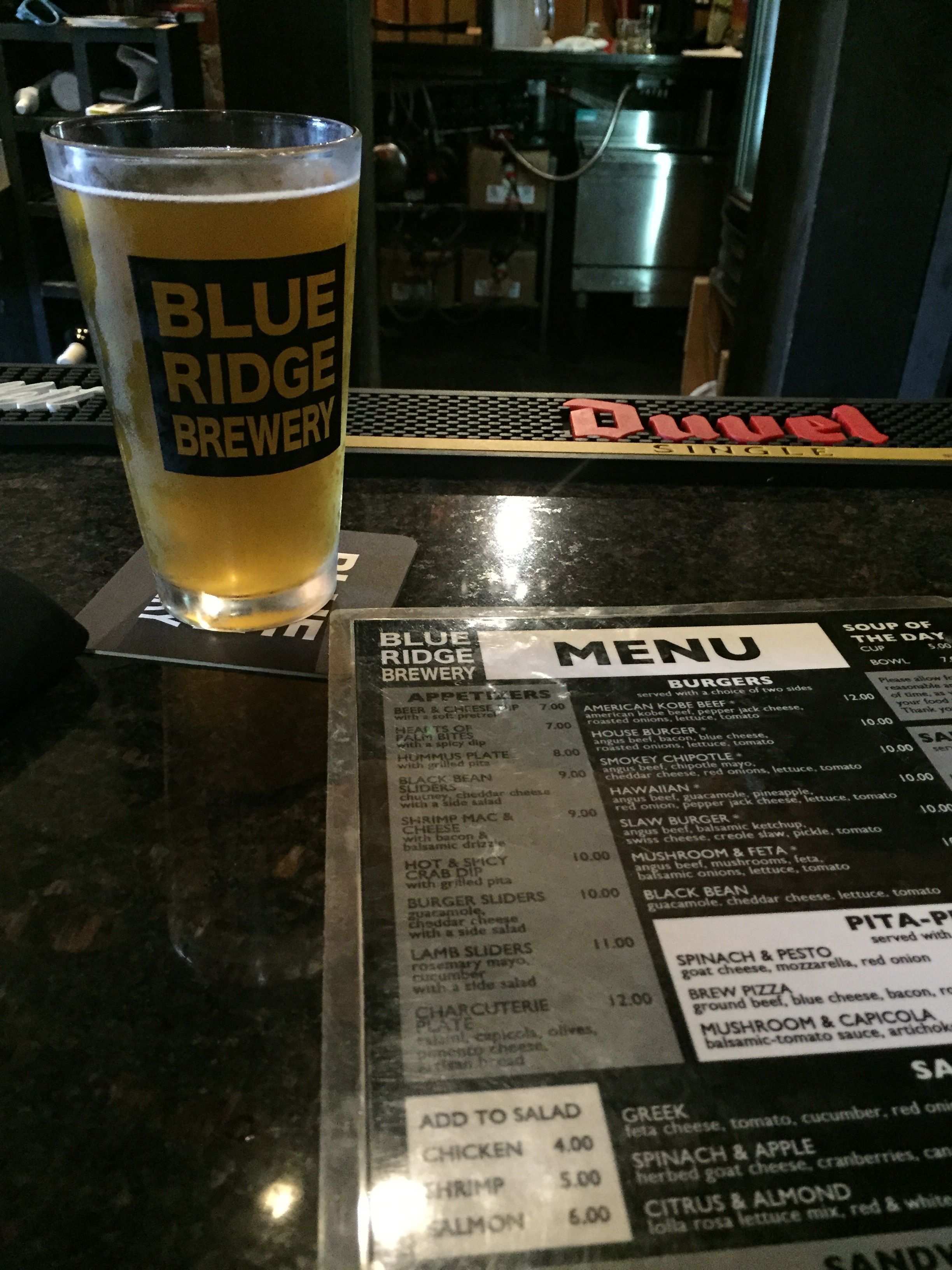 I also decided to break my 8 month stretch of being devoid of beer for just one afternoon, #thanksgluten, so we ventured to Blue Ridge Brewery and had some lunch and some local beers. They had a few beers on tap they brew in house, and they didn’t disappoint.